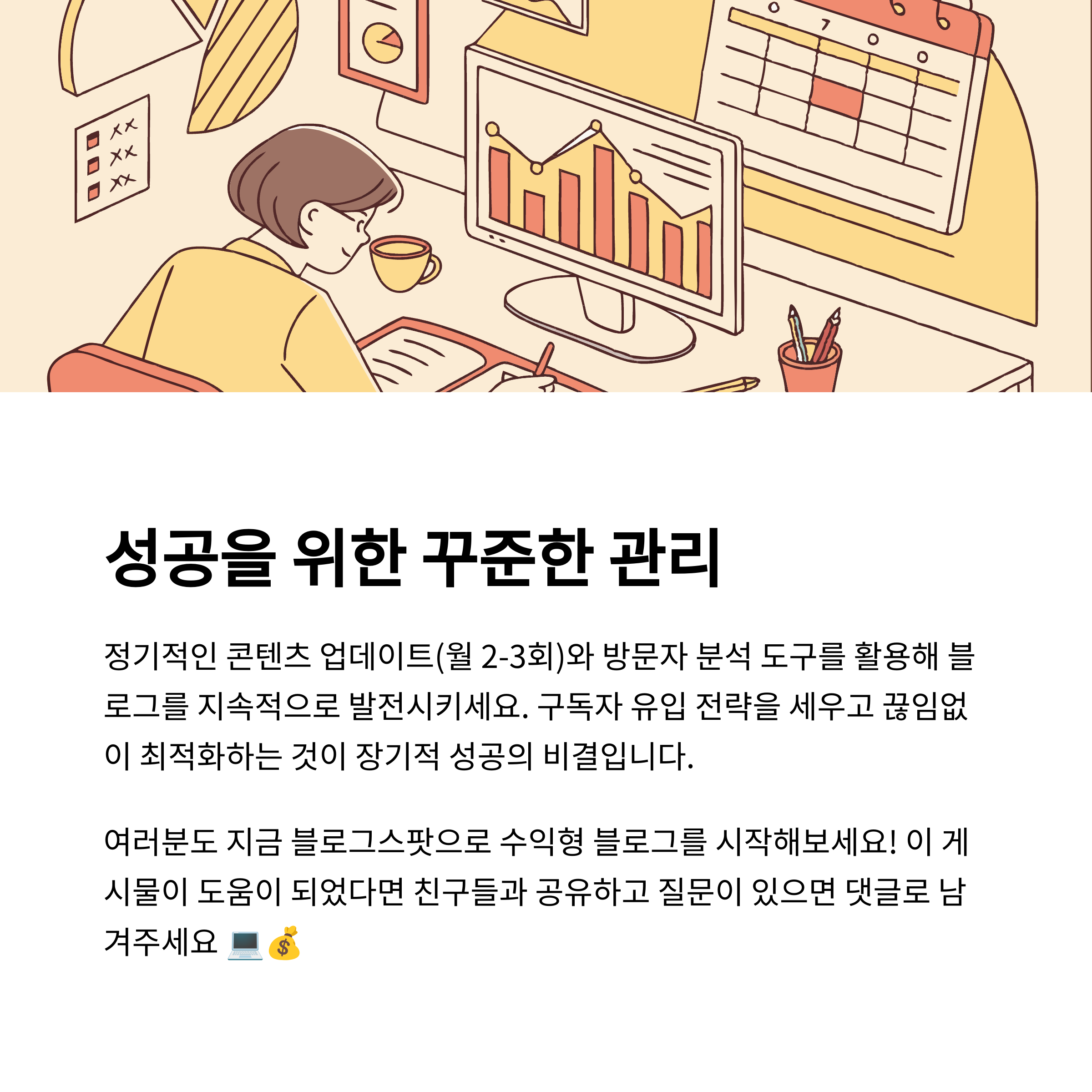 블로그스팟은 누구나 쉽게 시작할 수 있는 플랫폼이지만, 수익형 블로그로 발전시키기 위해서는 전략적인 콘텐츠 구성과 수익 도구의 적절한 활용이 필요합니다. 위의 7가지 방법을 단계적으로 실행하면 실질적인 수익을 창출할 수 있는 블로그로 성장할 수 있습니다.