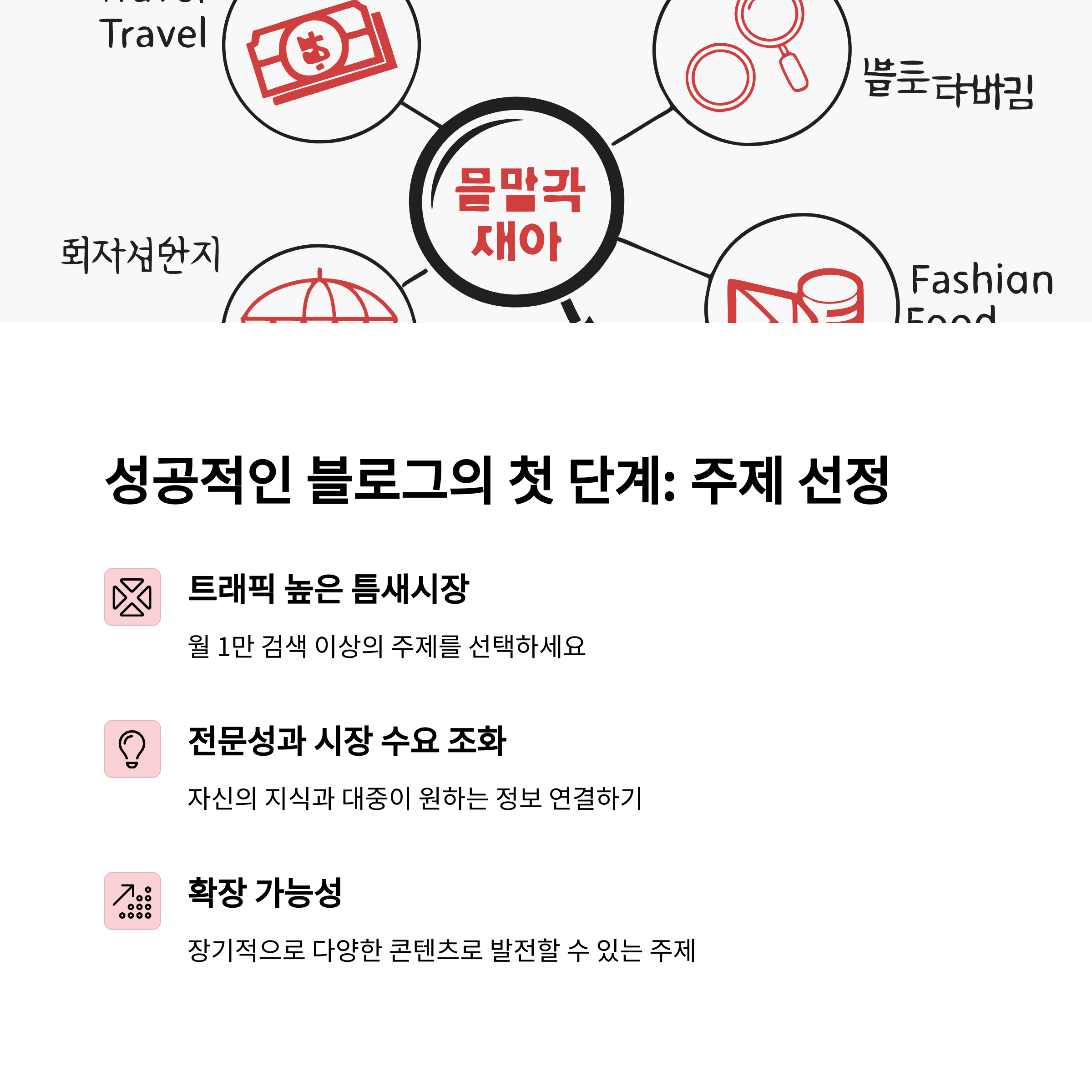 수익형 블로그의 핵심은 수익을 창출할 수 있는 주제를 선택하는 것입니다. 예: 건강, 금융, 뷰티, 육아, IT, 자기 계발. 주제를 정할 때는 검색량이 많고 경쟁이 적당한 키워드를 기준으로 선택하며, 타깃 독자의 관심사와 문제점을 분석해 그에 맞는 콘텐츠를 기획합니다.