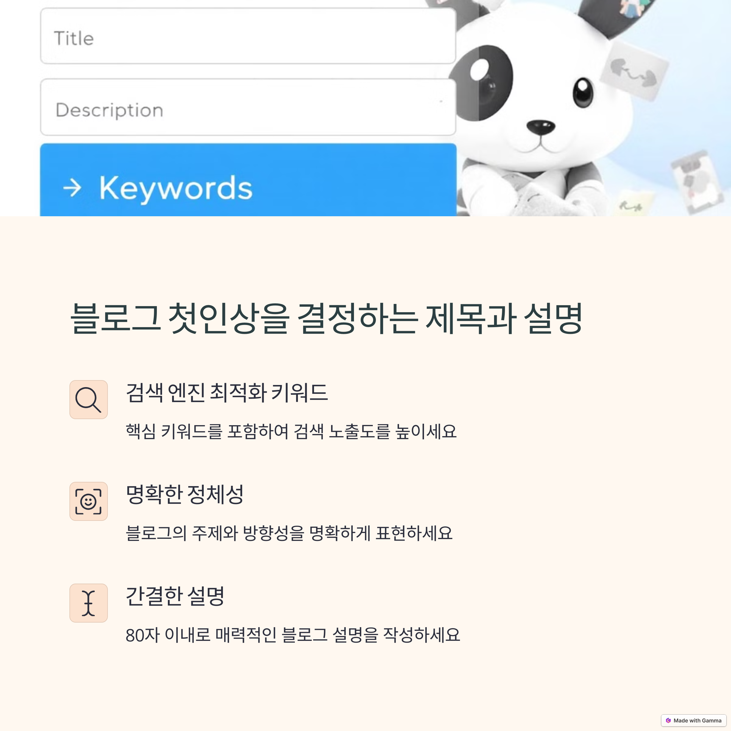 - 설명: 블로그의 주제를 간략하게 설명해 주세요. 예: 여행을 기록하는 블로그