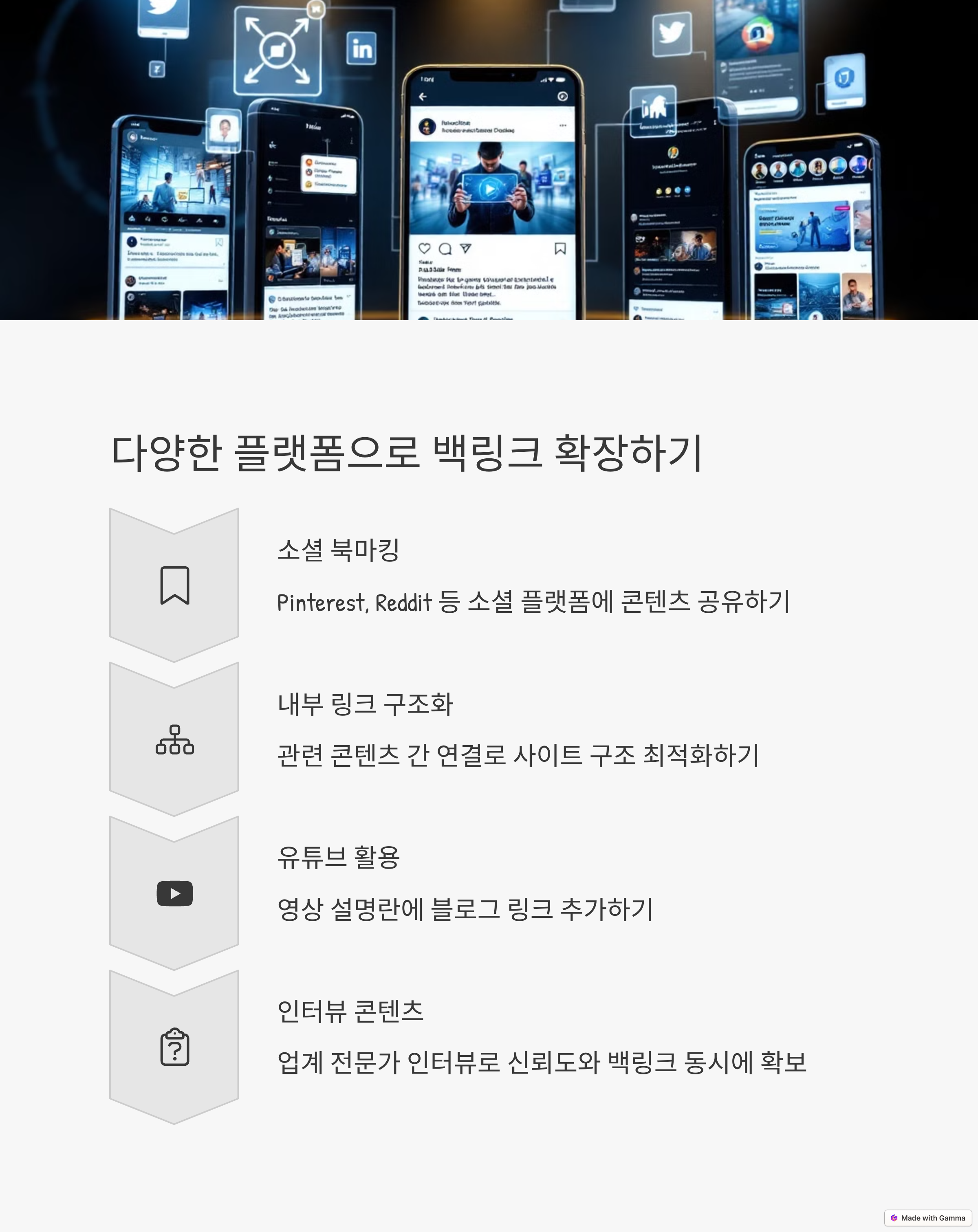Reddit, Digg, Pinterest와 같은 북마킹 사이트에 블로그 글을 등록하면, 검색 엔진에서 크롤링되고 노출 가능성이 커집니다. 단, 타겟 사용자층과 잘 맞는 플랫폼을 선택해야 합니다.