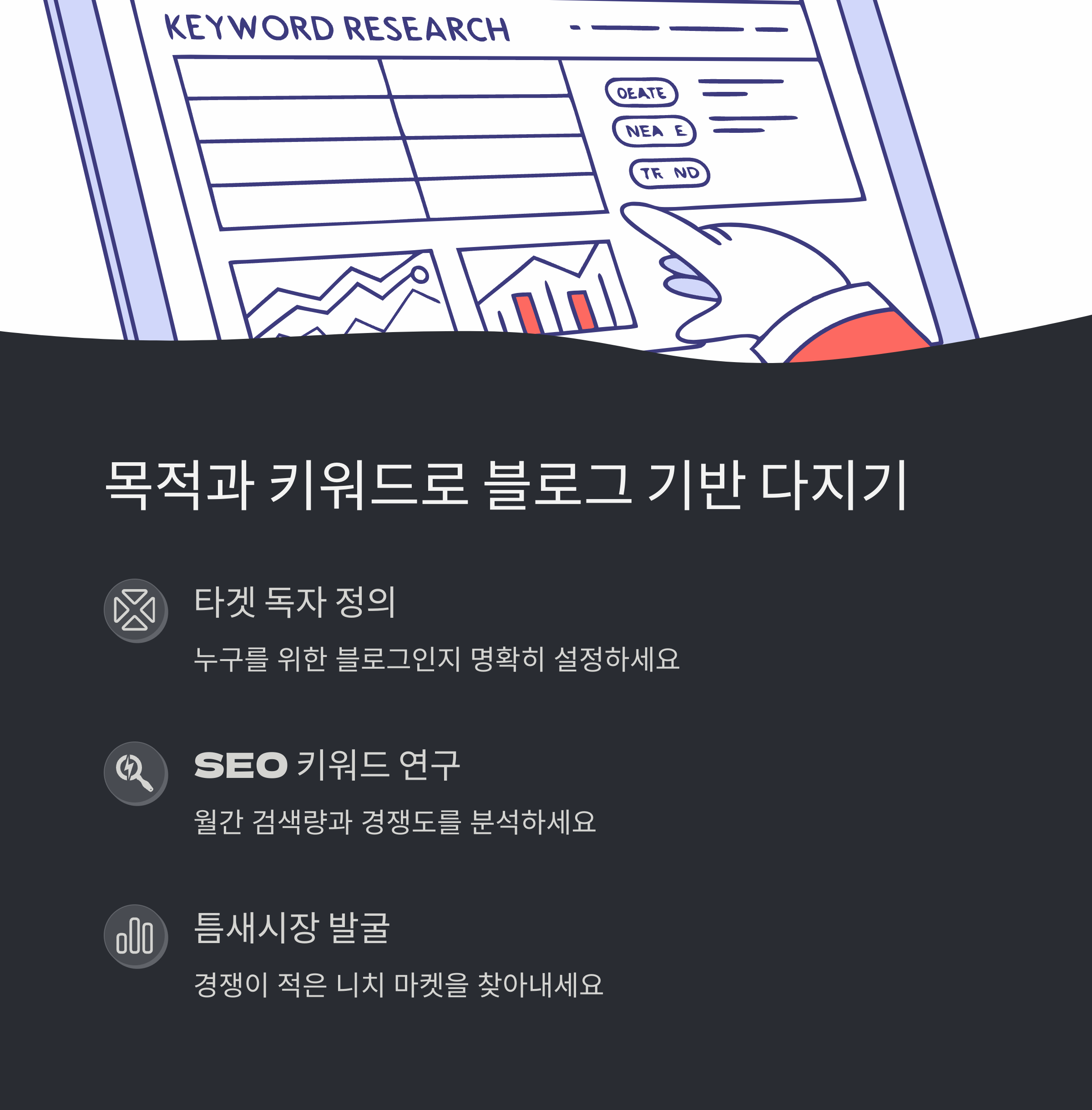 성공 블로그는 검색 유입을 극대화하기 위해 키워드 전략에 집중합니다. 각 글은 하나의 핵심 키워드를 기준으로 작성되며, 제목, 본문, 태그, 이미지 ALT 텍스트까지 키워드에 최적화되어 있습니다.
