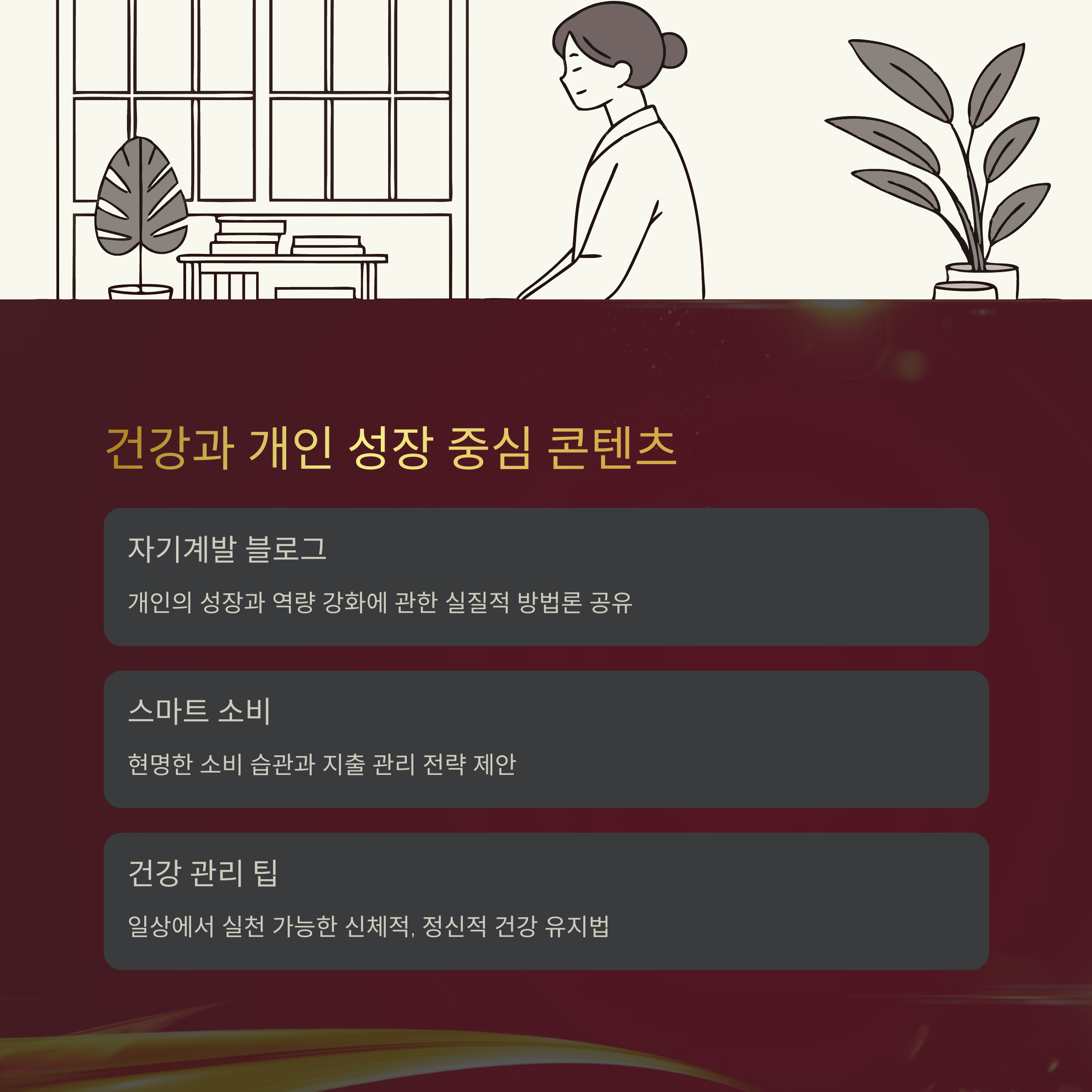 모닝 루틴, 시간 관리, 독서 요약 등 자기 계발 관련 콘텐츠는 꾸준한 수요가 있는 주제이며, 블로그 운영자 자신만의 루틴 공유 콘텐츠가 특히 인기를 끌고 있습니다.