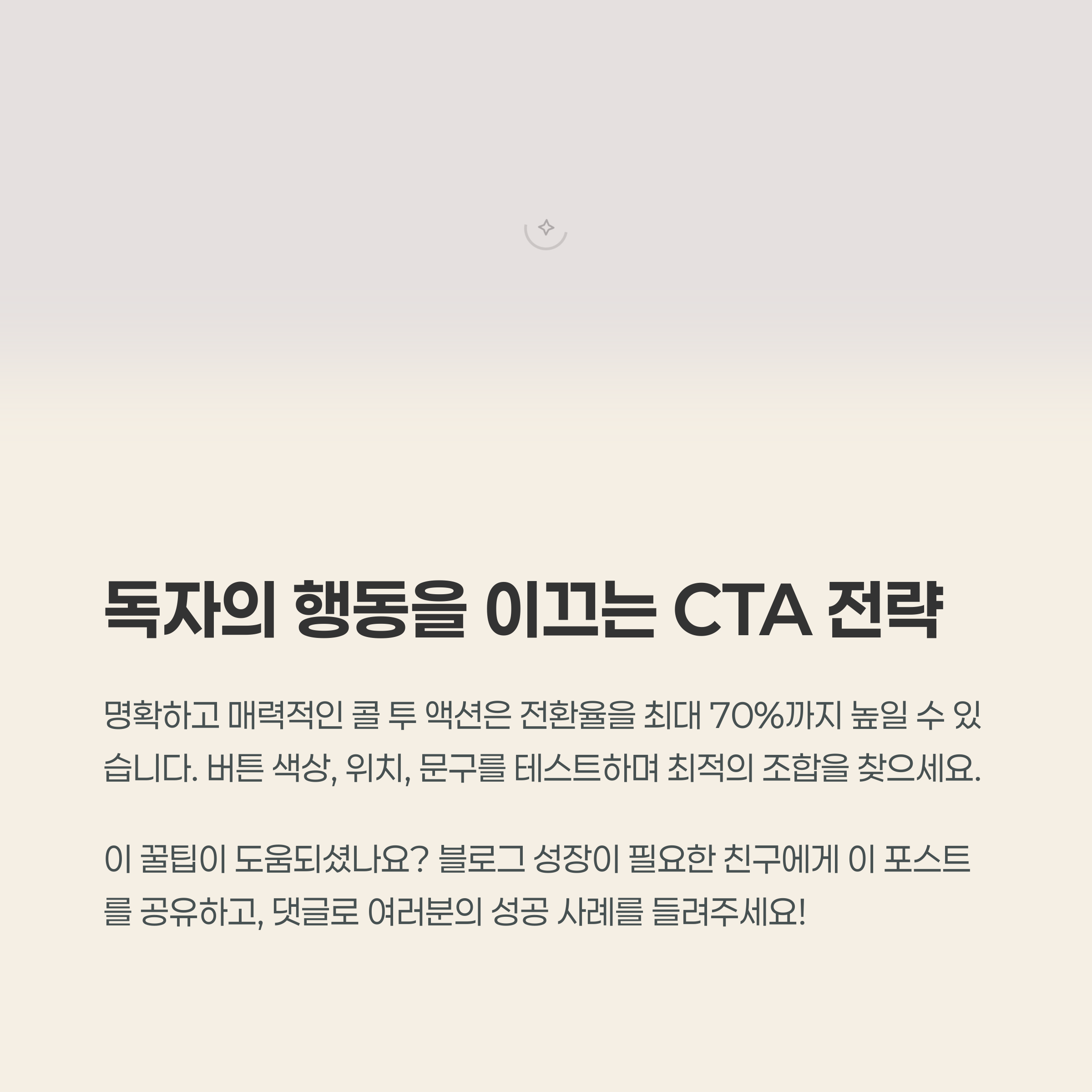 전환율을 높이기 위해서는 독자가 행동하도록 유도해야 합니다. '지금 바로 신청하세요', '더 알아보기', '무료 다운로드' 같은 문장을 포스팅 중간이나 끝에 삽입해 자연스럽게 행동을 유도해 보세요. 버튼 디자인도 함께 고려하면 효과가 배가됩니다.