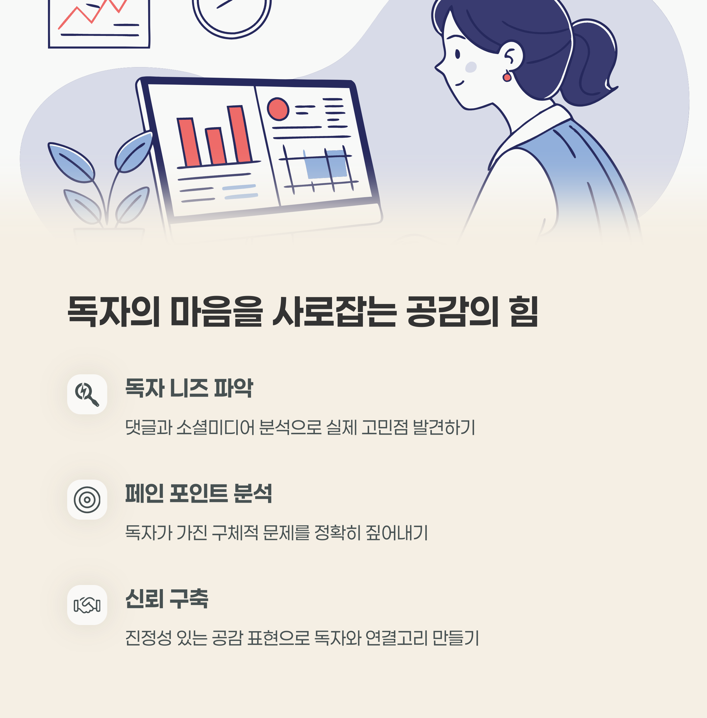 전환을 이끌기 위한 첫 단계는 독자의 문제를 정확히 짚는 것입니다. 독자의 니즈를 공감하며 시작하면 글의 몰입도가 높아지고, 자연스럽게 해결책에 관심을 갖게 됩니다. 문제 제기는 공감 문장, 질문형 문장 등을 활용해 효과적으로 표현할 수 있습니다.