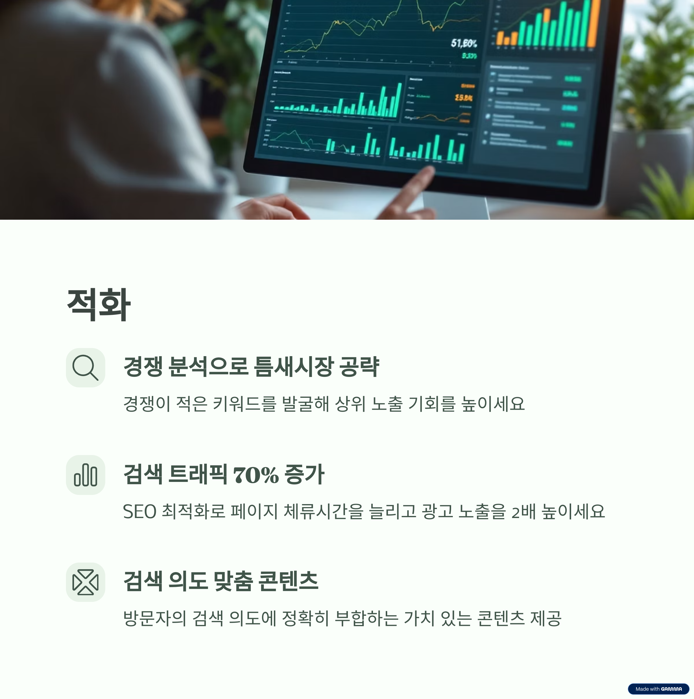 제목, 본문, 메타태그에 자연스럽게 키워드를 배치하는 게 중요합니다.