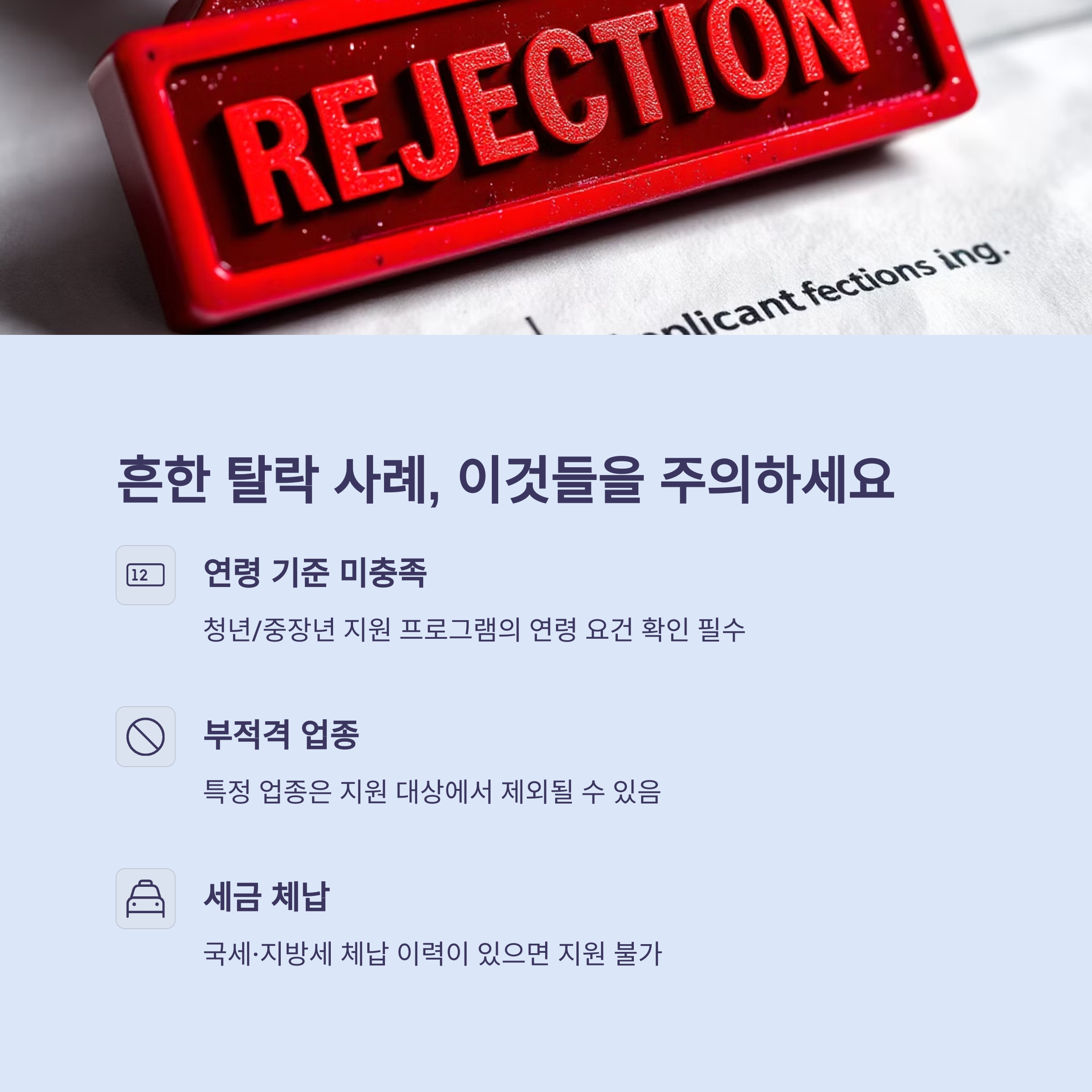 일부 사업은 신청은 가능하지만, 심사 시 탈락하거나 보완 요청 없이 자동 탈락 처리될 수 있습니다.