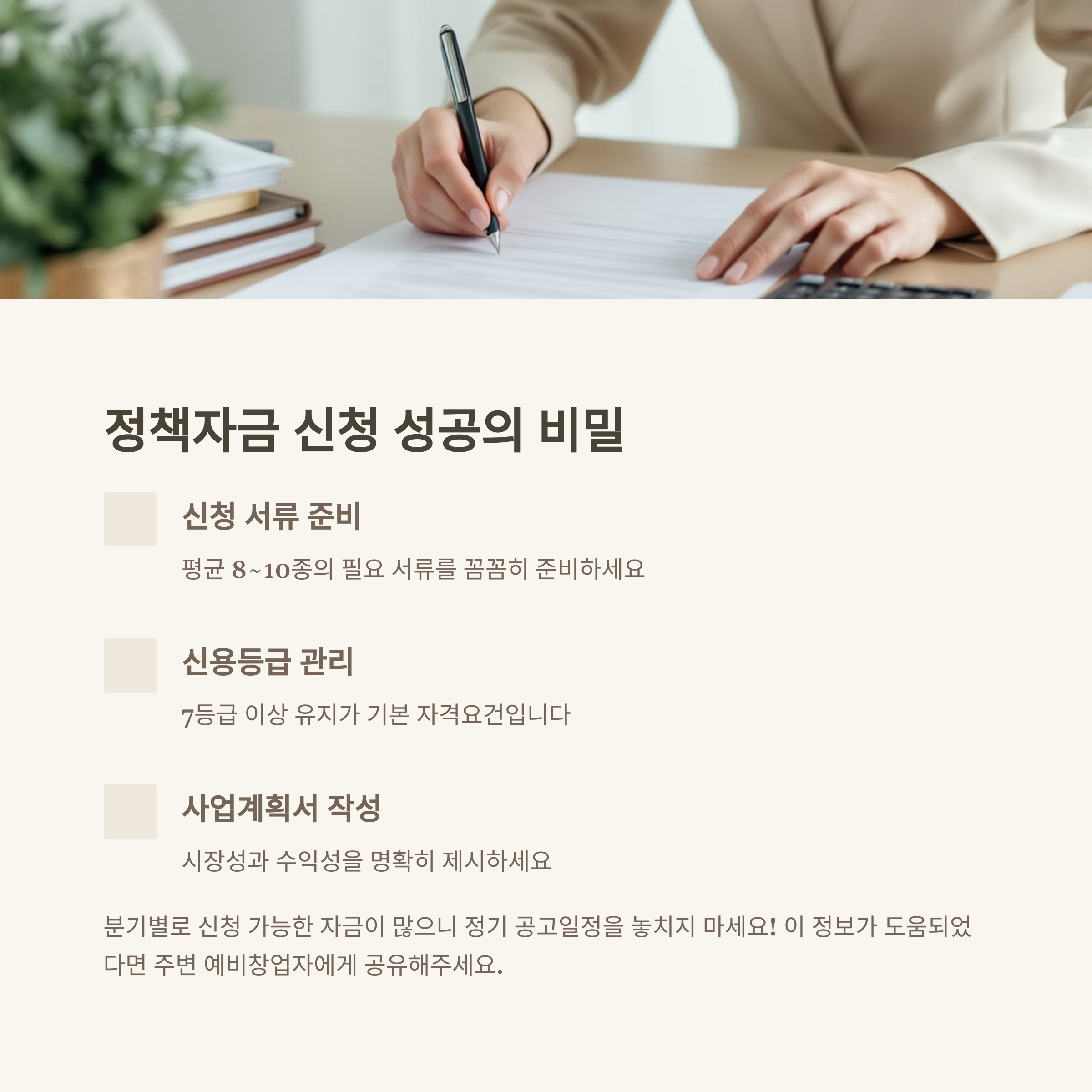 이렇게 다양한 정부 정책자금이 있다는 사실, 알고 나면 마음가짐부터 달라지죠. 저도 처음엔 '나 같은 사람도 받을 수 있을까?' 싶었지만, 지금은 오히려 안 받으면 손해라는 생각이 들어요. 여러분도 창업 준비 중이라면, 꼭 이 글에서 소개한 내용들을 바탕으로 한 번 도전해 보세요! 혹시 더 궁금한 점이 있다면 댓글로 남겨주시고요, 다음 포스트에서는 사업계획서 잘 쓰는 법도 공유할게요. 함께 성장해요!