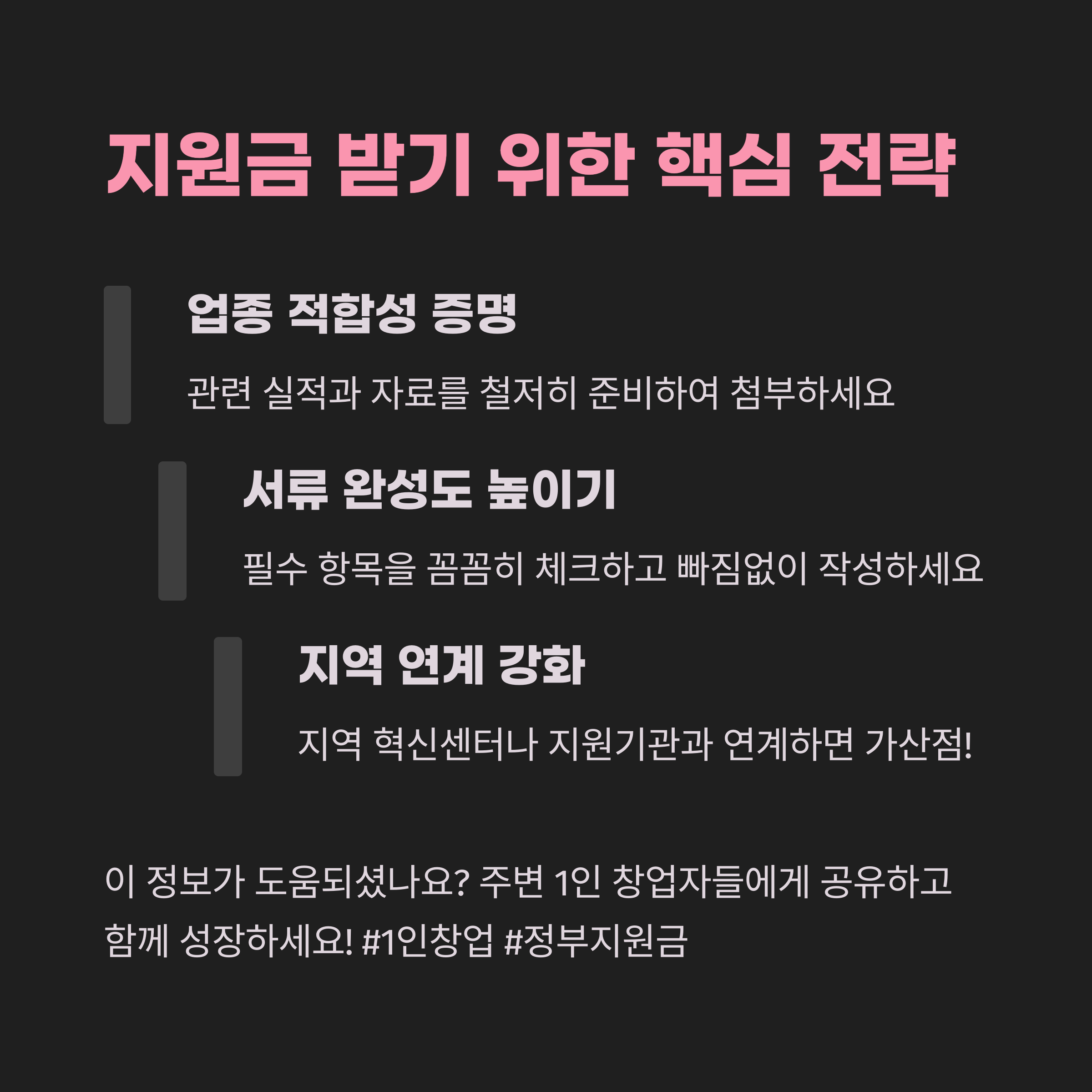 1인창업자금을 노릴 때는 작지만 명확한 전략이 필요해요. 아래 전략을 체크해 보세요.