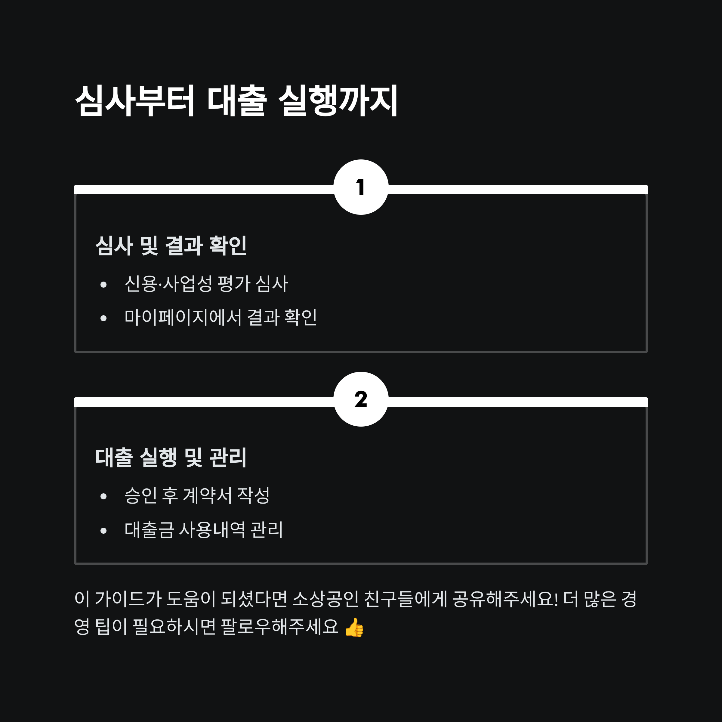 2025년 정책자금 신청은 사전 준비 → 온라인 신청 → 서류보완 → 실사 → 최종승인의 5단계를 거칩니다. 철저한 준비와 빠른 대응이 성공 여부를 좌우하므로, 본 가이드를 바탕으로 계획적으로 신청을 진행하세요.