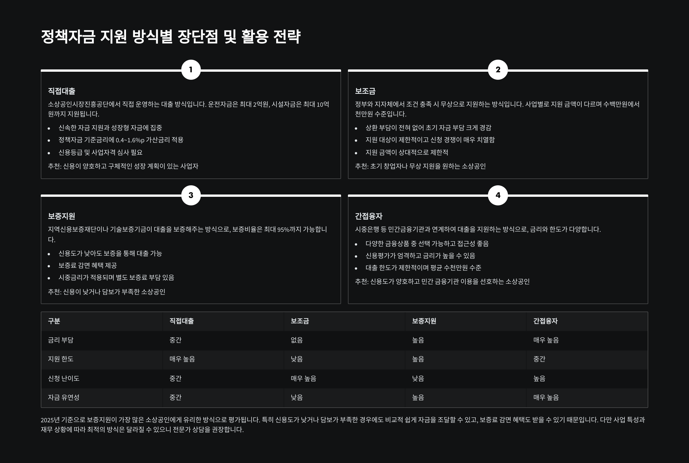 정책자금 지원 방법별 장단점 완벽 비교 | 2025 최신 분석