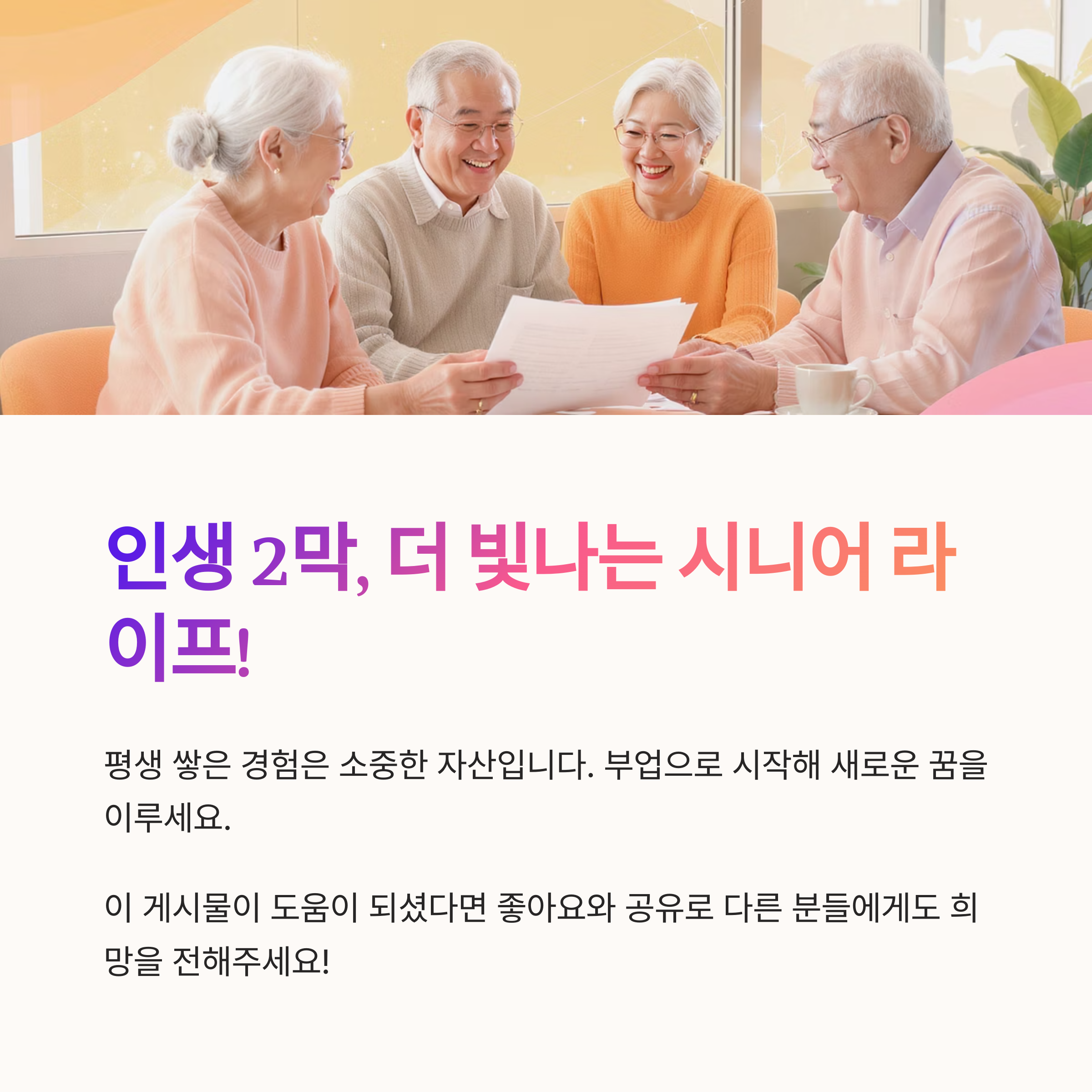 은퇴 후에도 경제 활동을 지속하는 시니어가 늘고 있으며, 부업은 체력, 시간, 사회 경험을 고려한 선택이 중요합니다.